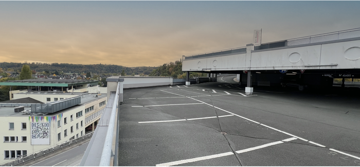 Mit Blick auf den großflächigen QR-Code am SVB-Gebäude laufen alle Kurzfilme der Reihe LOOOPs – sie zeigen Siegen und Umgebung aus künstlerischer Perspektive.